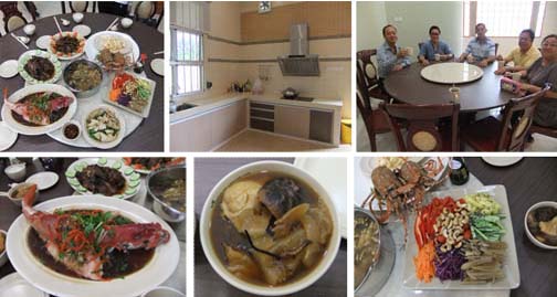 It is a practice that the first meal at the new building consists of auspicious menu such as 5-element (5 color) vegetables 五色菜, lamb stew for auspicious (羊者祥也),seafood stew 佛跳墙, lobsters 龙虾 etc… 等等…