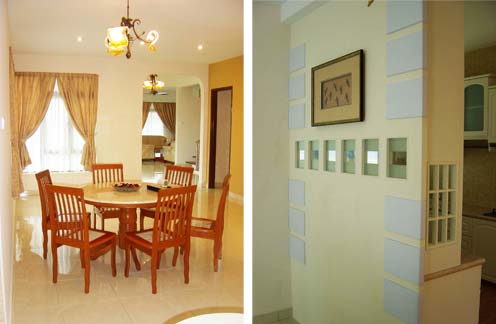 The Numerical Logics … 9 can also be seen in some of the areas in this apartment, such as the 99 long strips of wood at the master bedroom bed-head section; it stands for “Forever and ever” with 100 white colour square boxes bonded together and attached to the 99 strips stand for “100 years of bonding harmony and blessings” …